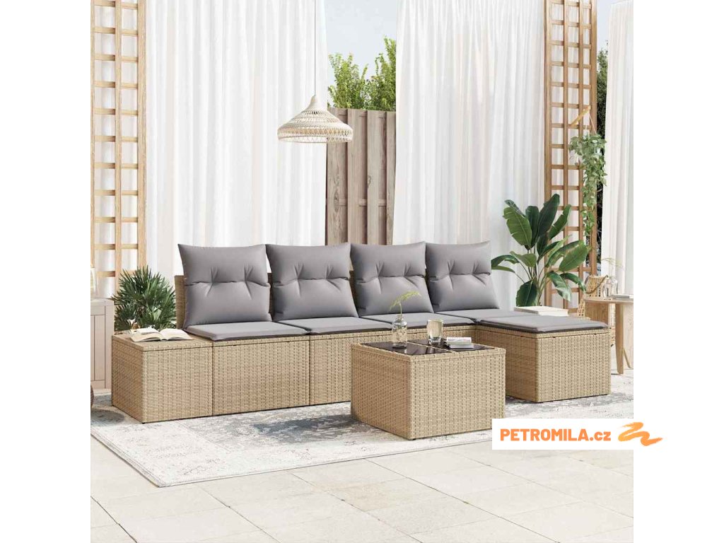 Sada zahradních pohovek s polštářem 6 pcs Béžová Poly ratan