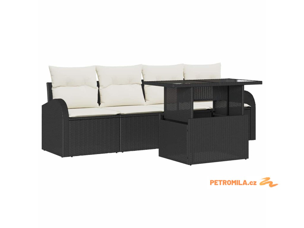 Sada zahradních pohovek 5 pcs Černá 100 x 55 x 73 cm Poly ratan