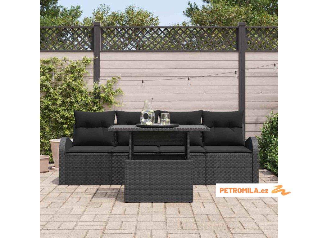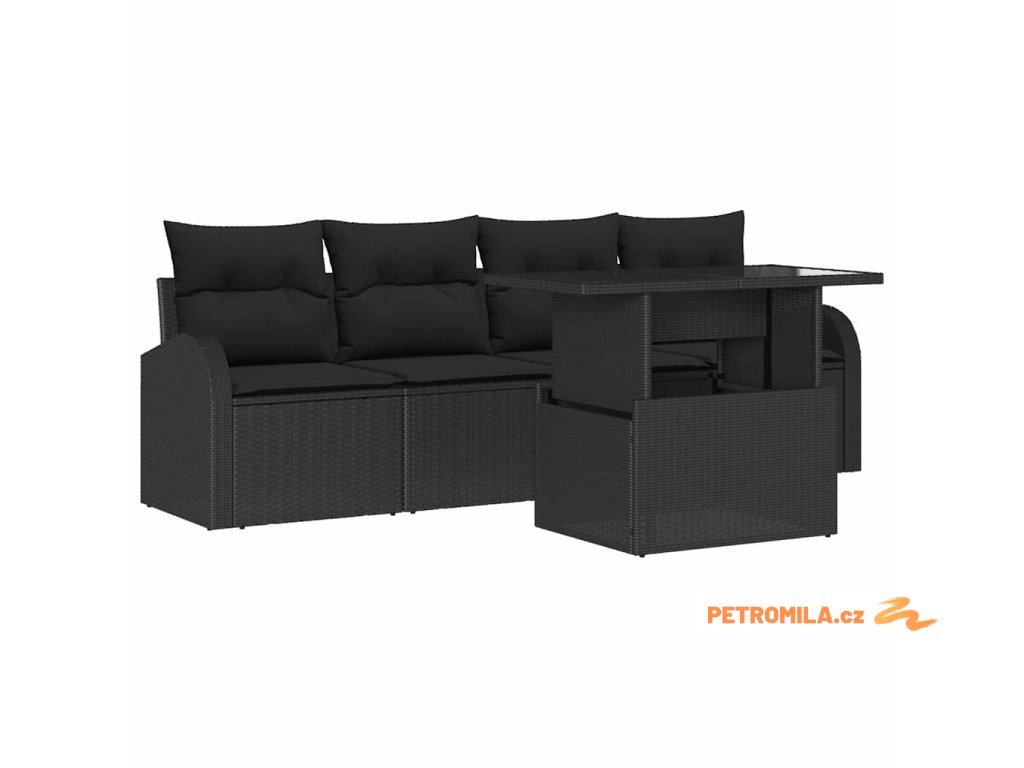 Sada zahradních pohovek 5 pcs Černá 100 x 55 x 73 cm Poly ratan