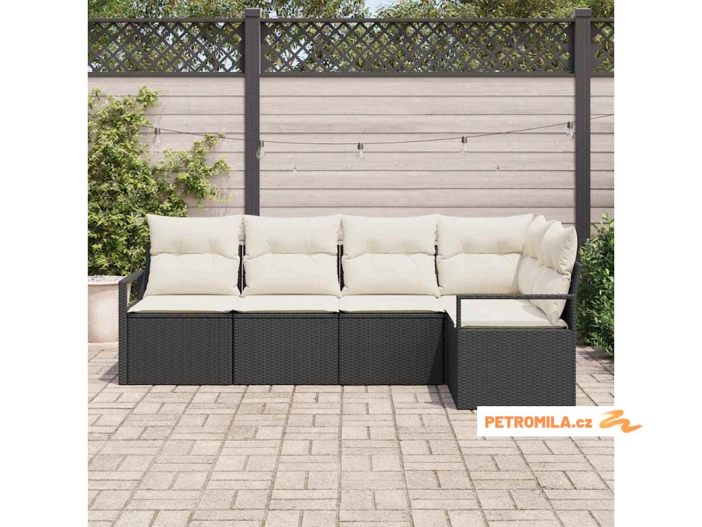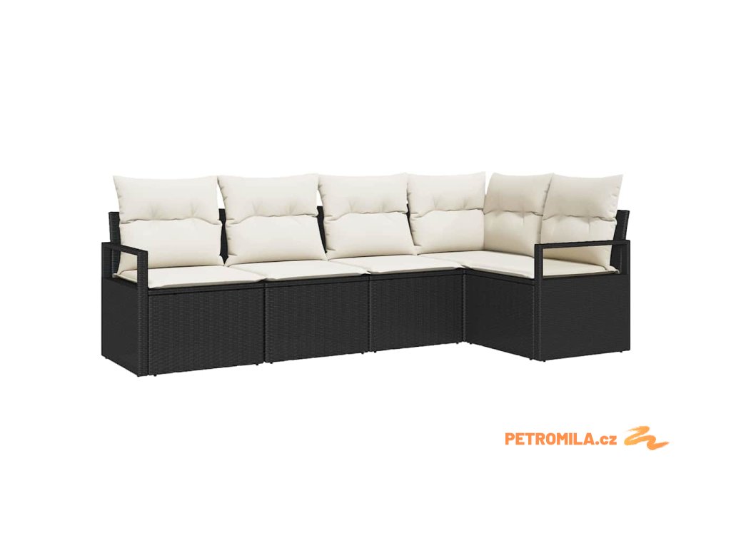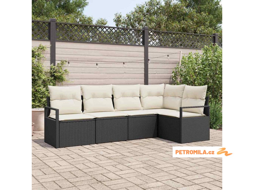 Sada zahradních pohovek 5 pcs Černá a bílá polyratan