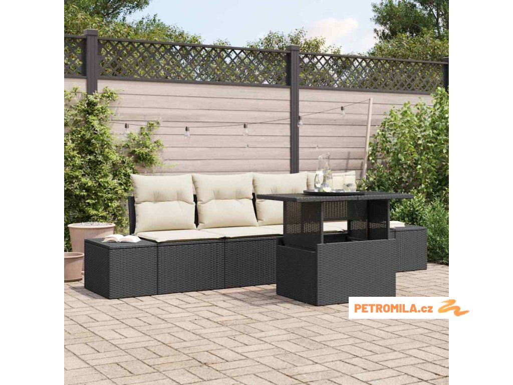 Sada zahradních pohovek 5 pcs Černá a krémová 100 x 55 x 73 cm