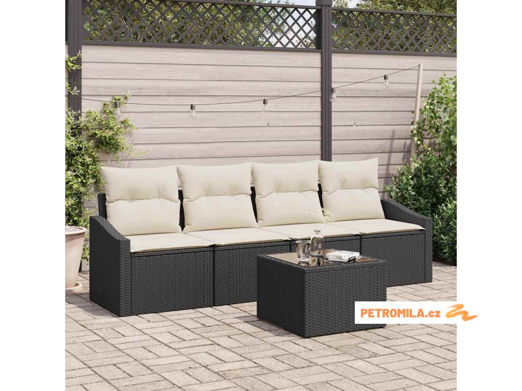 Sada zahradních pohovek 5 pcs Černá a krémová 55 x 55 x 37 cm