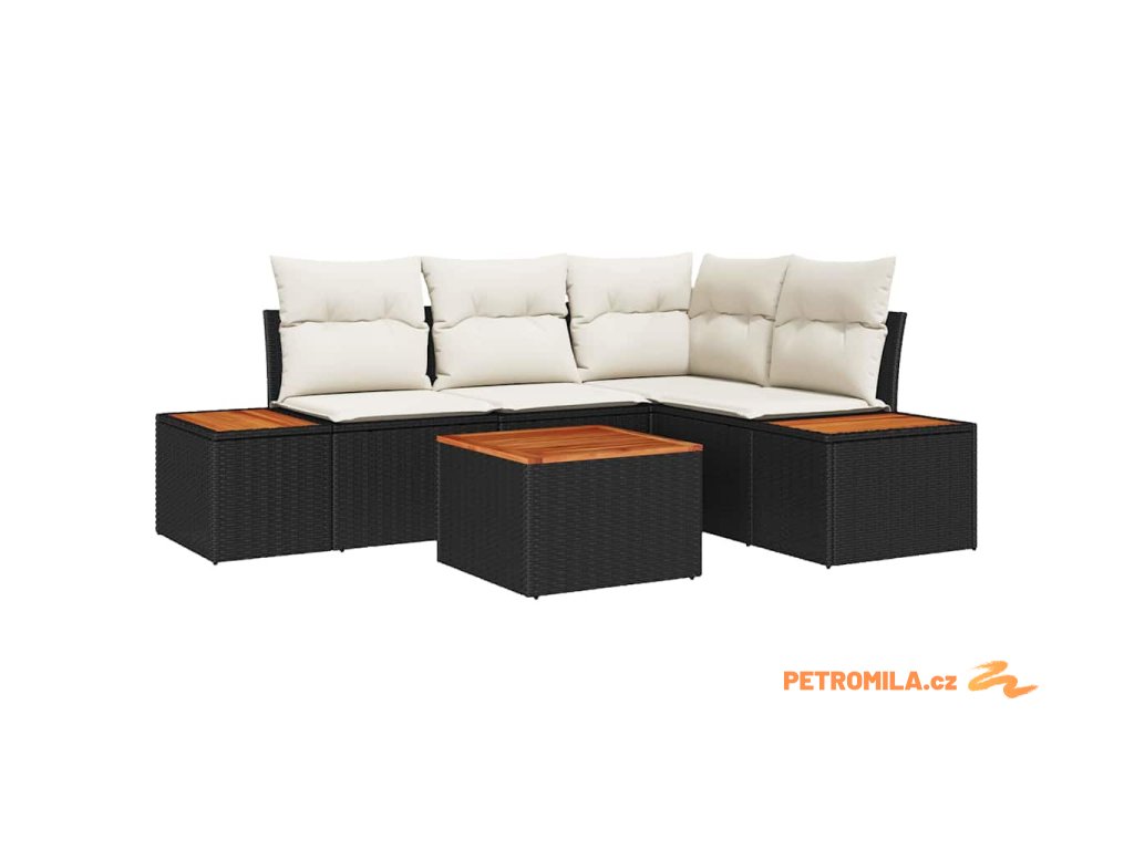 Sada zahradních pohovek 5 pcs Černá a krémová Poly ratan