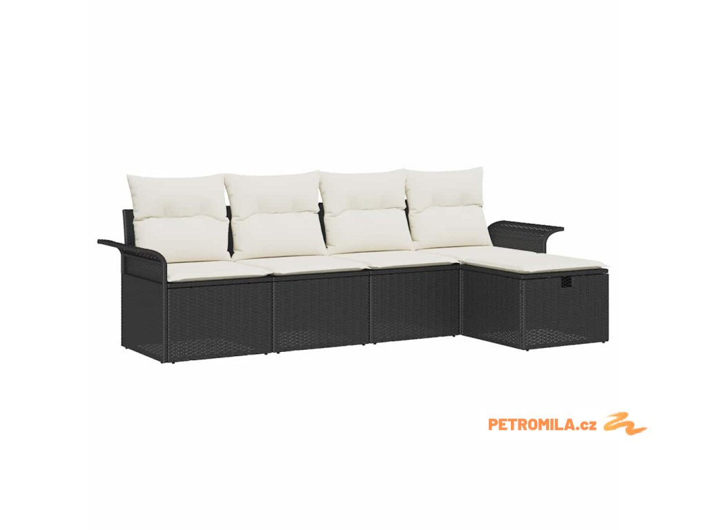 Sada zahradních pohovek 5 pcs Černá a krémová Poly ratan