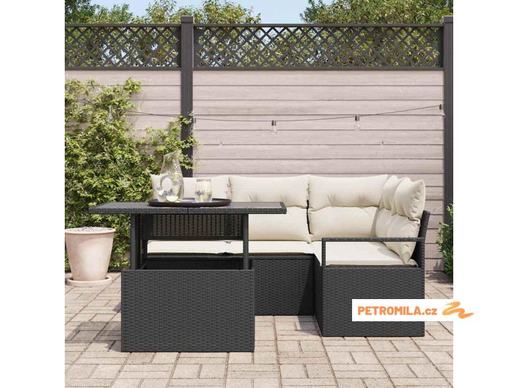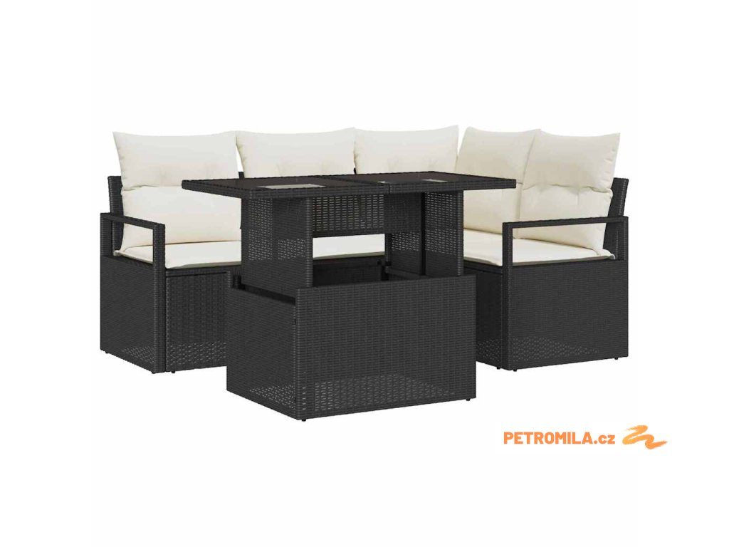 Sada zahradních pohovek 5 pcs Černá a krémová polyratan