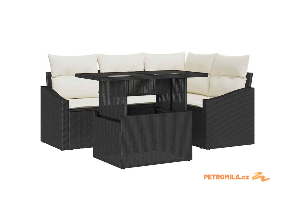 Sada zahradních pohovek 5 pcs Černá a krémová polyratan