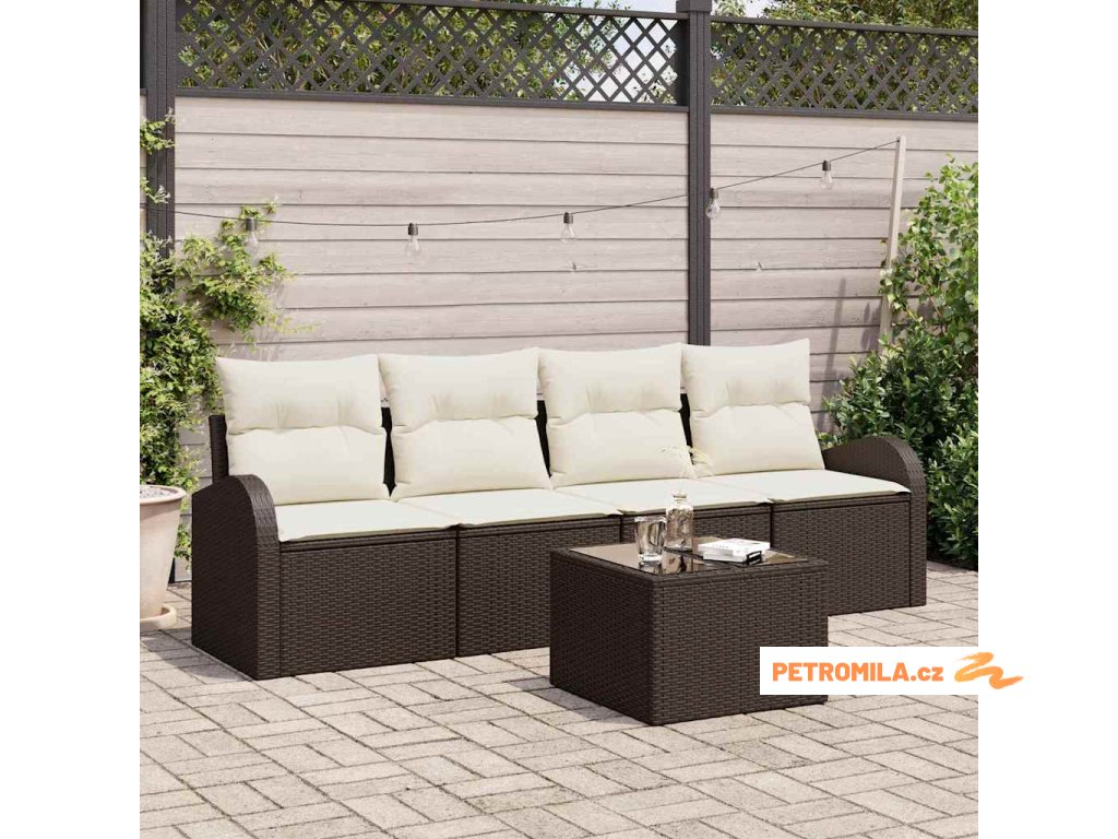Sada zahradních pohovek 5 pcs Hnědá 55 x 55 x 37 cm Poly ratan