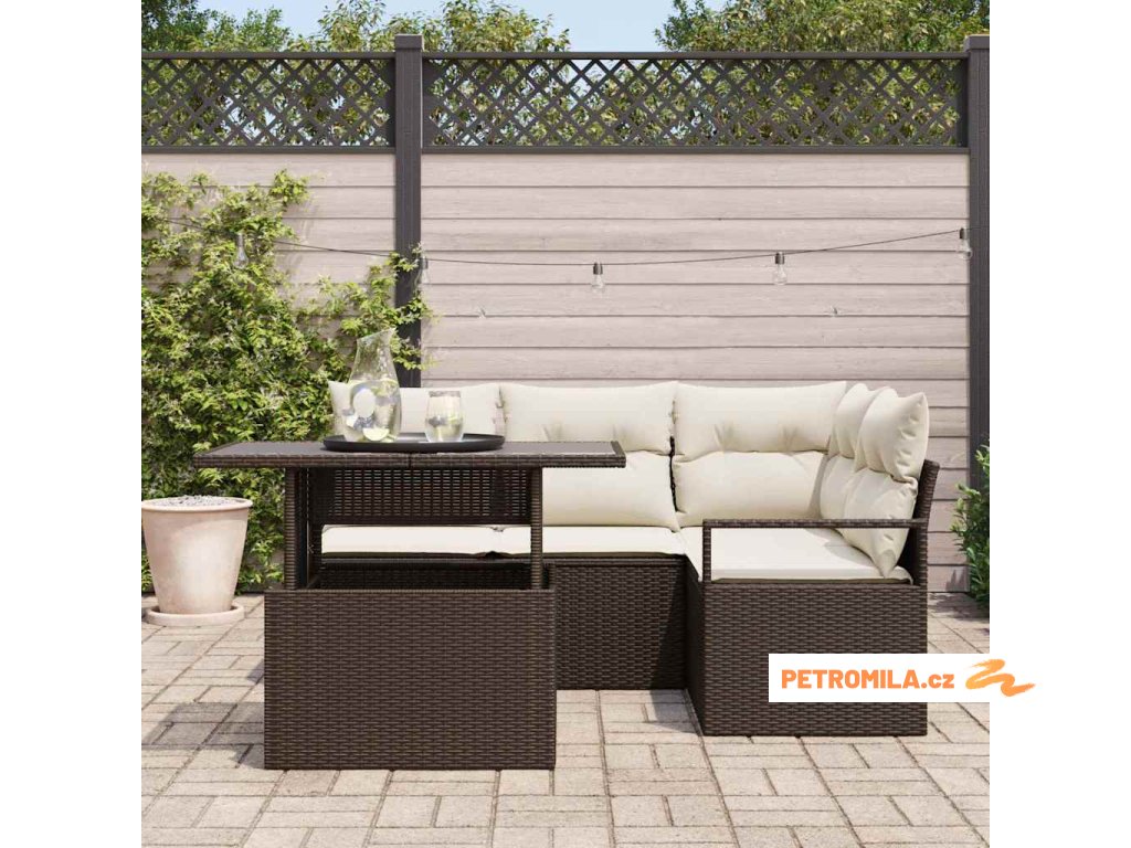 Sada zahradních pohovek 5 pcs Hnědá a krémová 100 x 55 x 73 cm