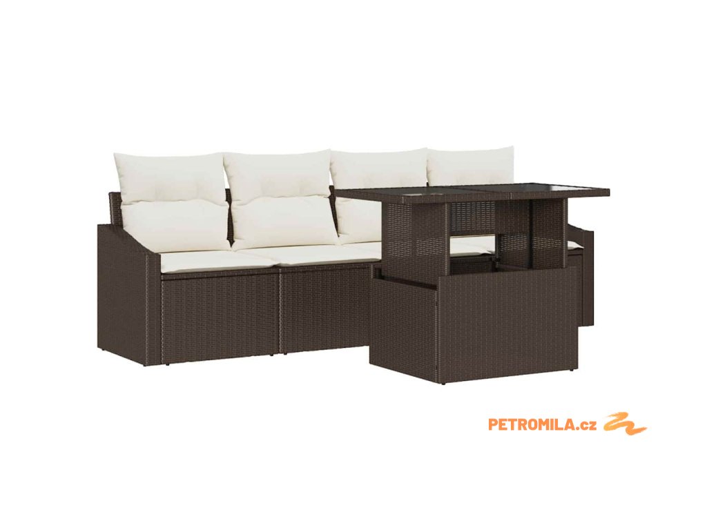 Sada zahradních pohovek 5 pcs Hnědá a krémová 100 x 55 x 73 cm