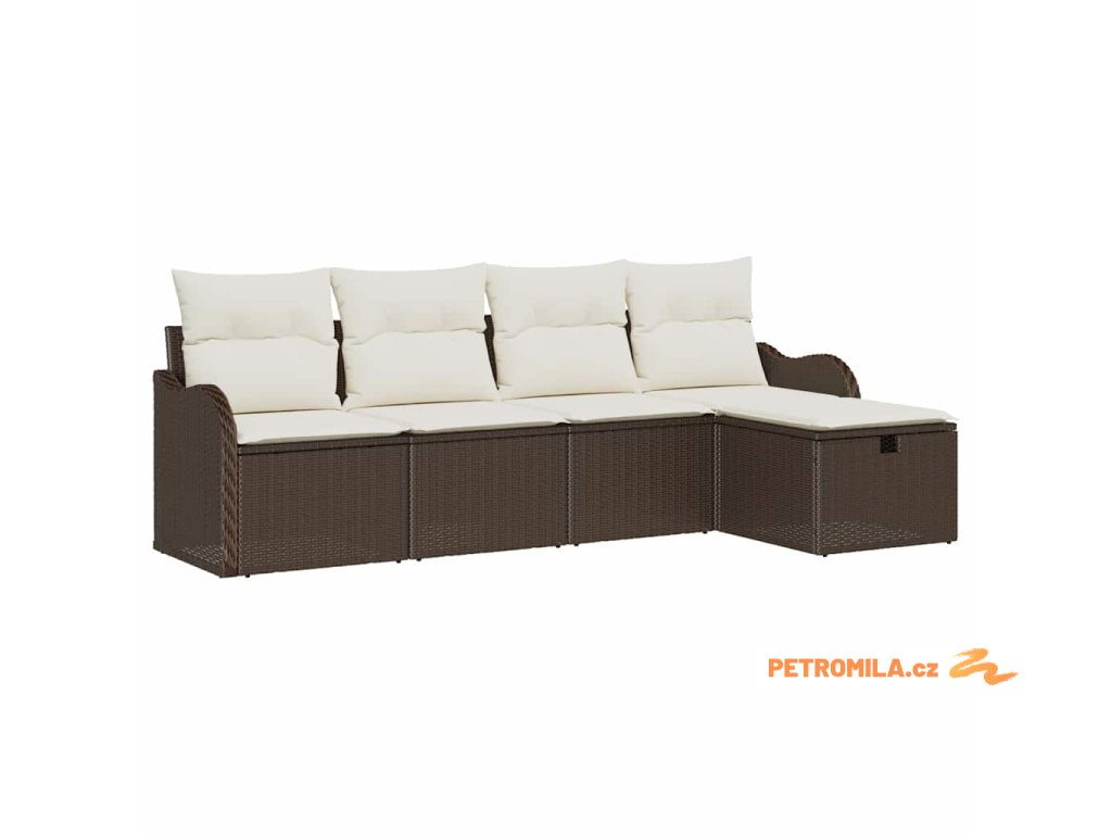 Sada zahradních pohovek 5 pcs Hnědá a krémová Poly ratan