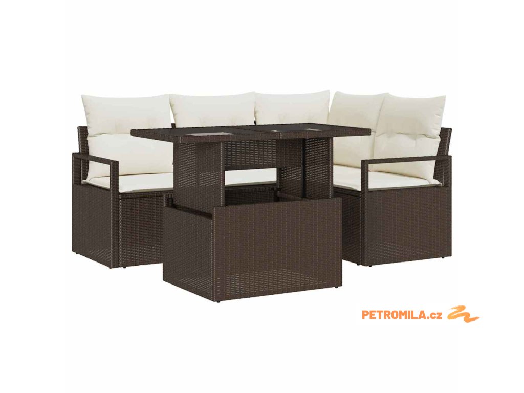 Sada zahradních pohovek 5 pcs Hnědá a krémová polyratan