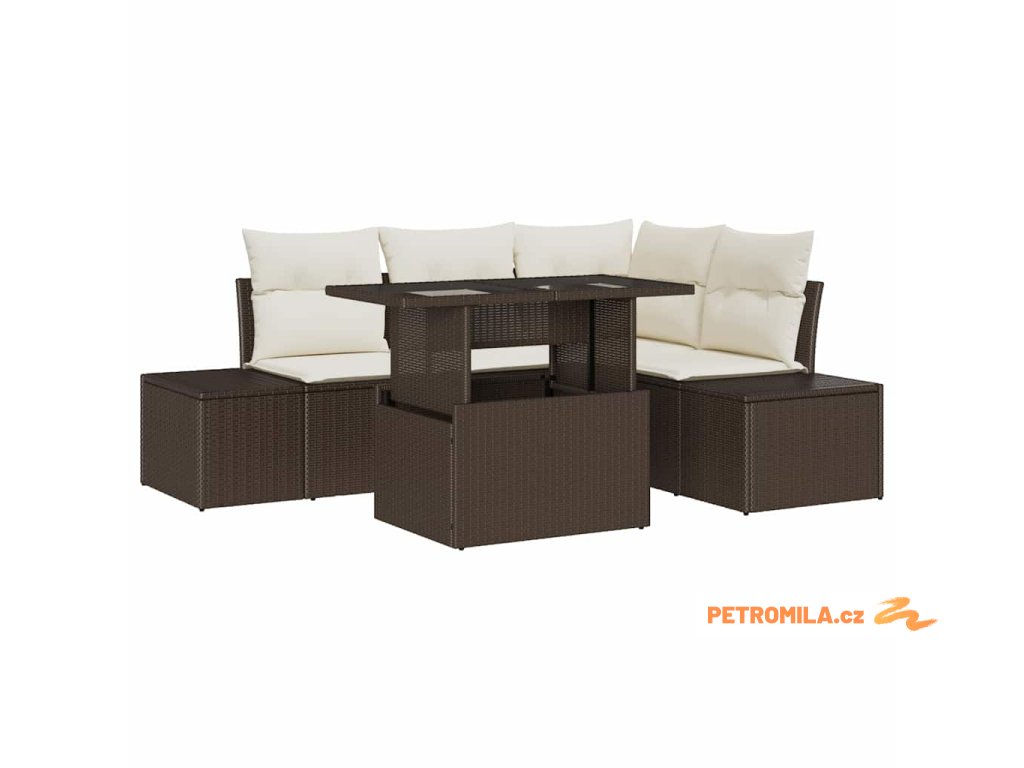 Sada zahradních pohovek 5 pcs Hnědá a krémová polyratan