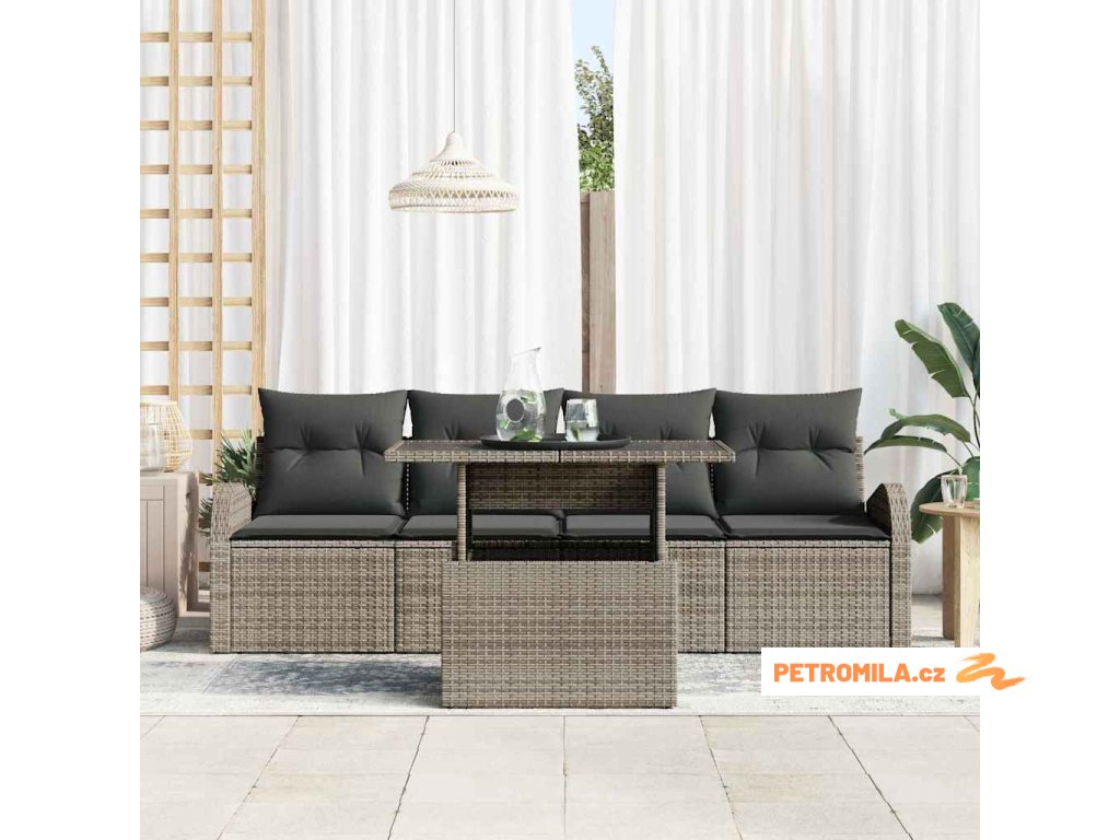 Sada zahradních pohovek 5 pcs Šedá 100 x 55 x 73 cm Poly ratan