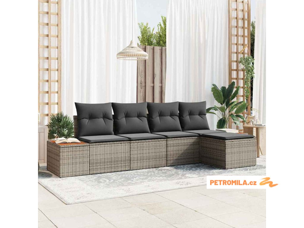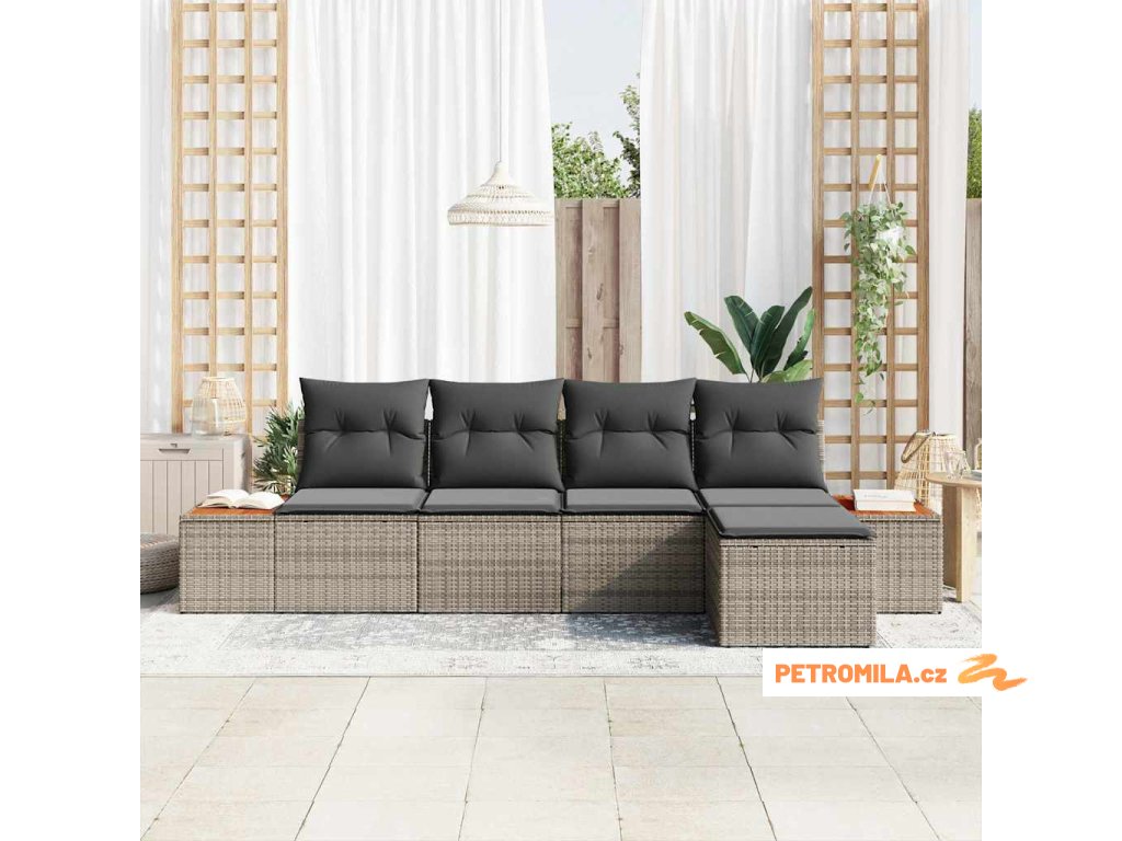 Sada zahradních pohovek 5 pcs Šedá 184 x 62 x 85 cm Poly ratan