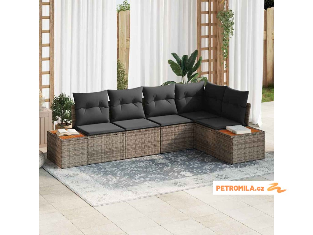 Sada zahradních pohovek 5 pcs Šedá 264 x 154 x 85 cm Poly ratan