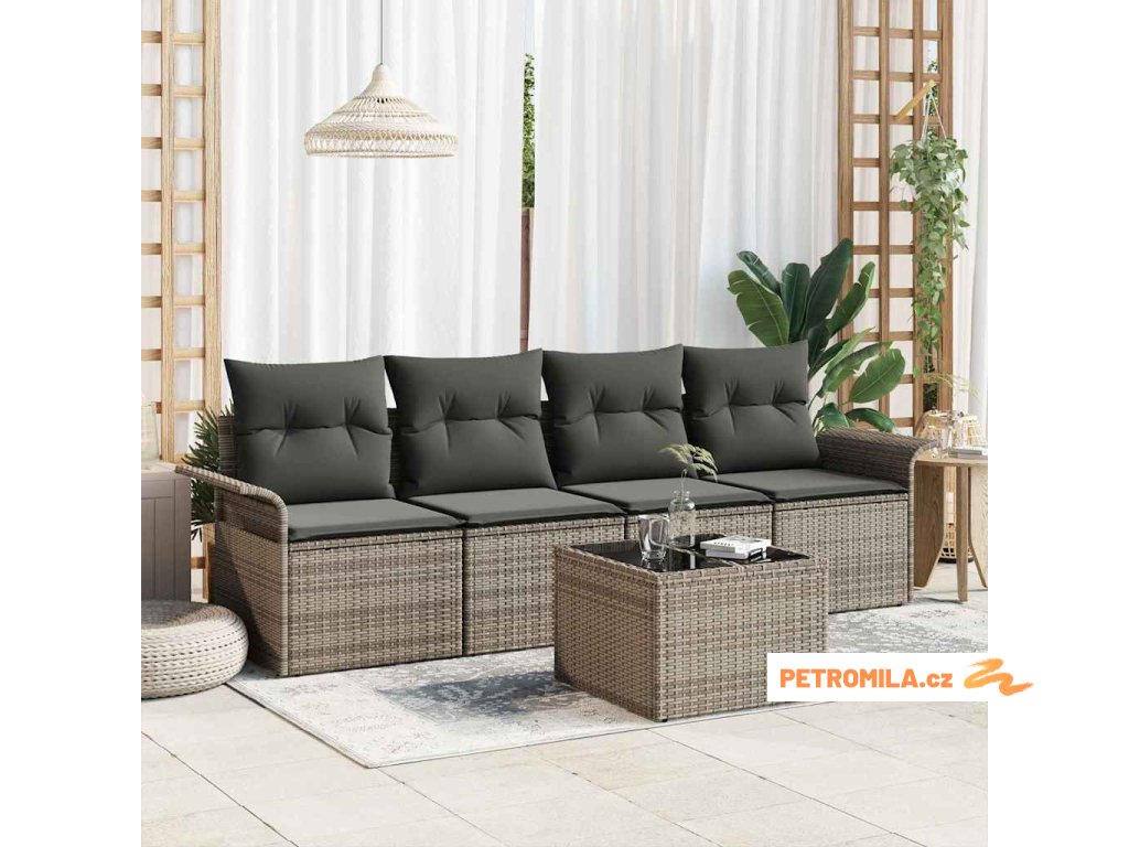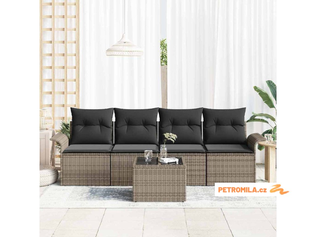 Sada zahradních pohovek 5 pcs Šedá Polyratan a ocel a sklo