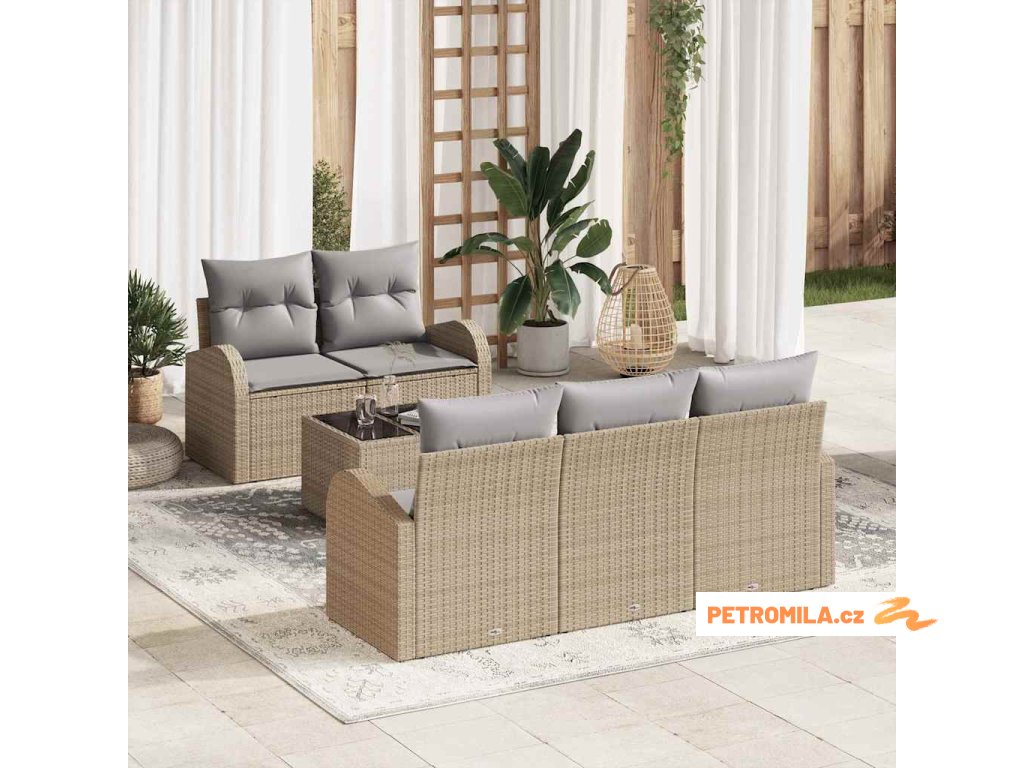 Sada zahradních pohovek 6 pcs Béžová 55 x 55 x 37 cm Poly ratan