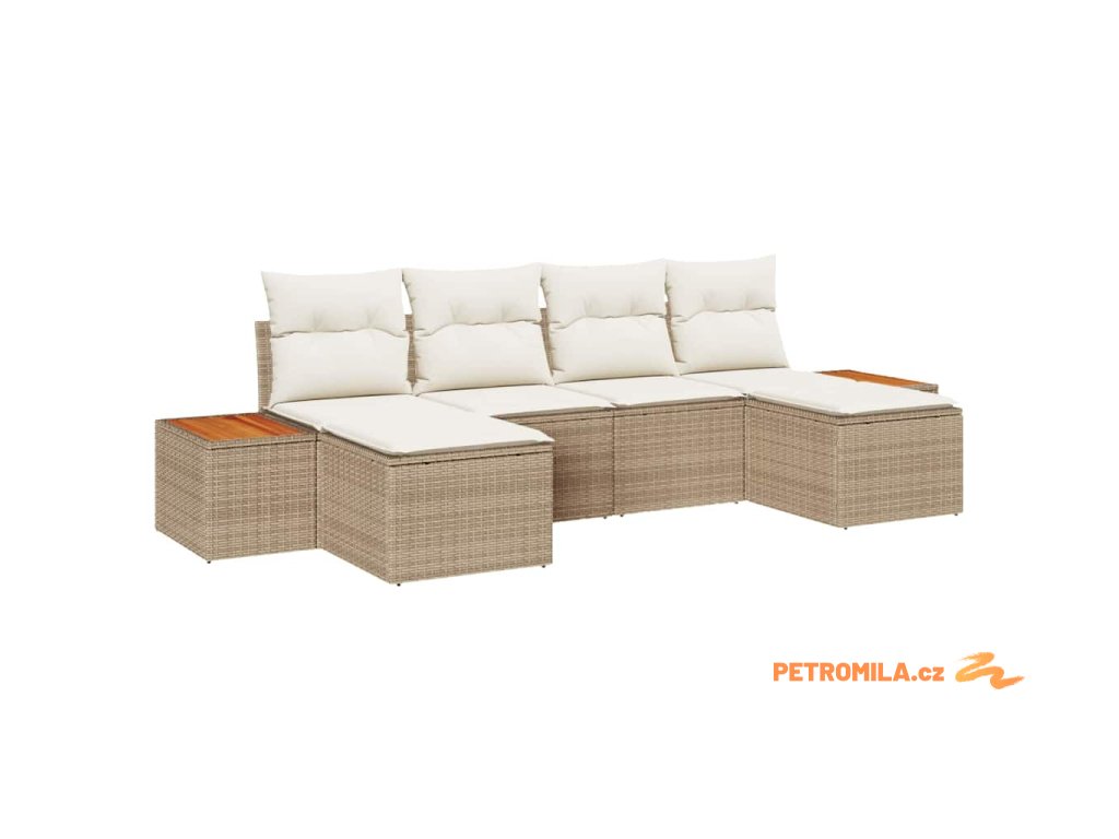 Sada zahradních pohovek 6 pcs Béžová a krémová Poly Ratan
