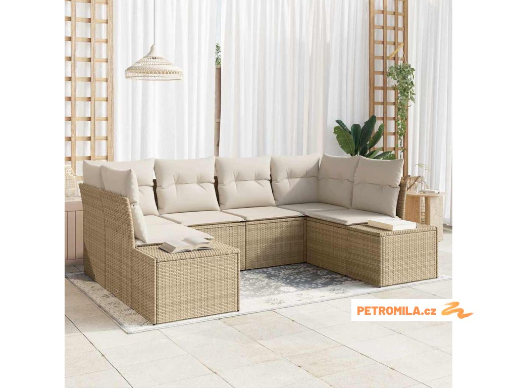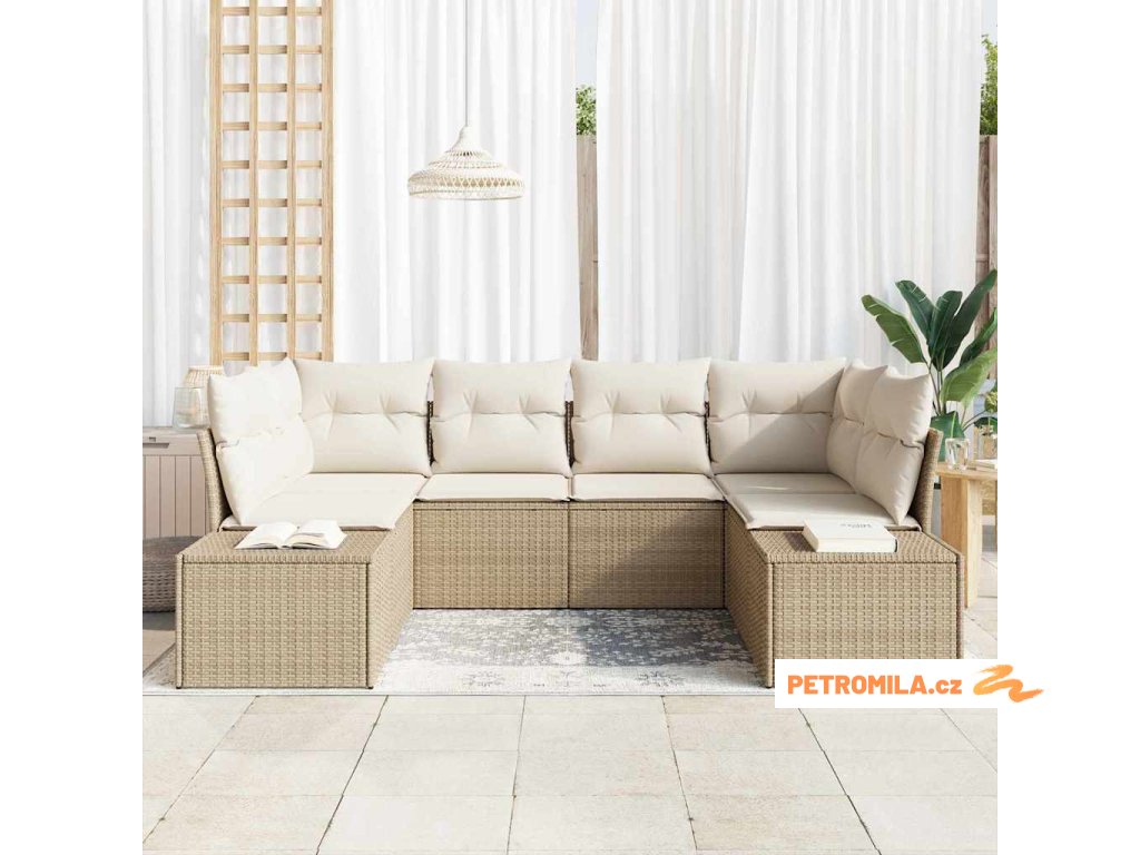 Sada zahradních pohovek 6 pcs Béžová a krémová Poly ratan