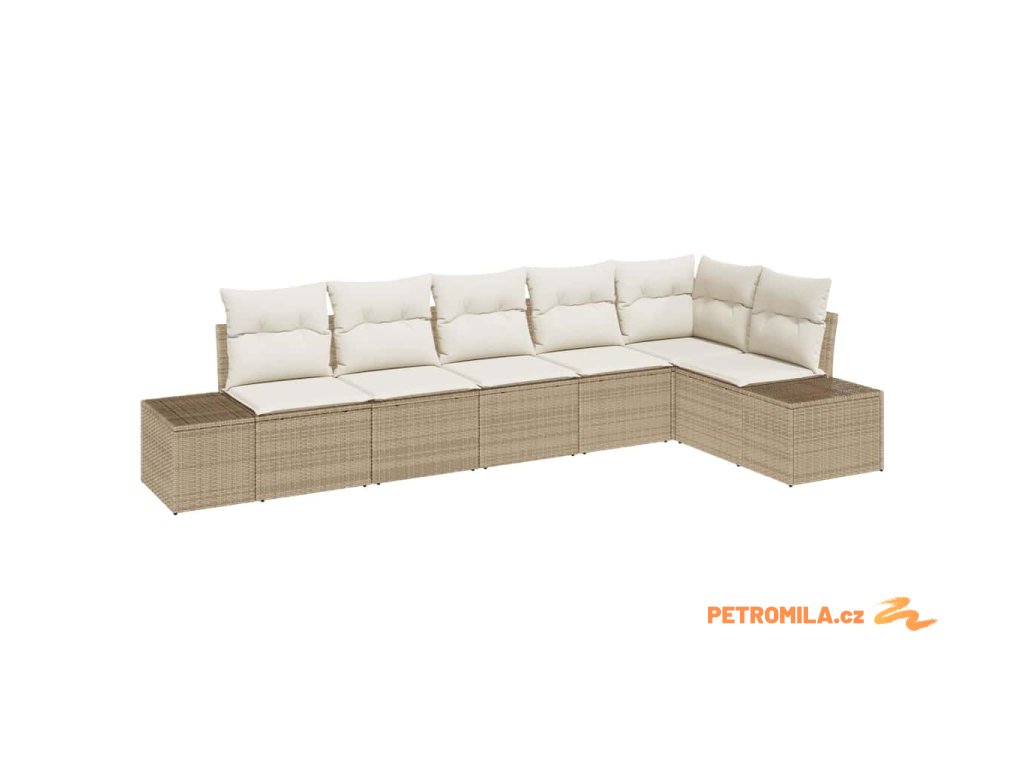 Sada zahradních pohovek s polštářem 6 pcs Béžová Poly Ratan