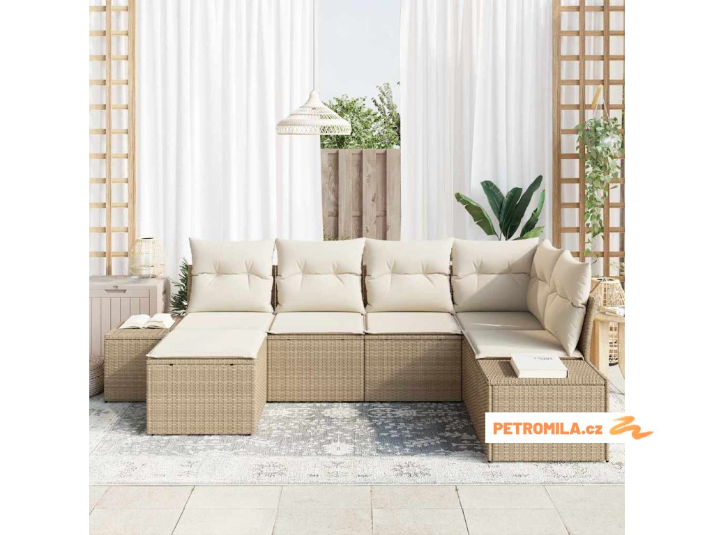 Sada zahradních pohovek s polštářem 8 pcs Béžová Poly ratan