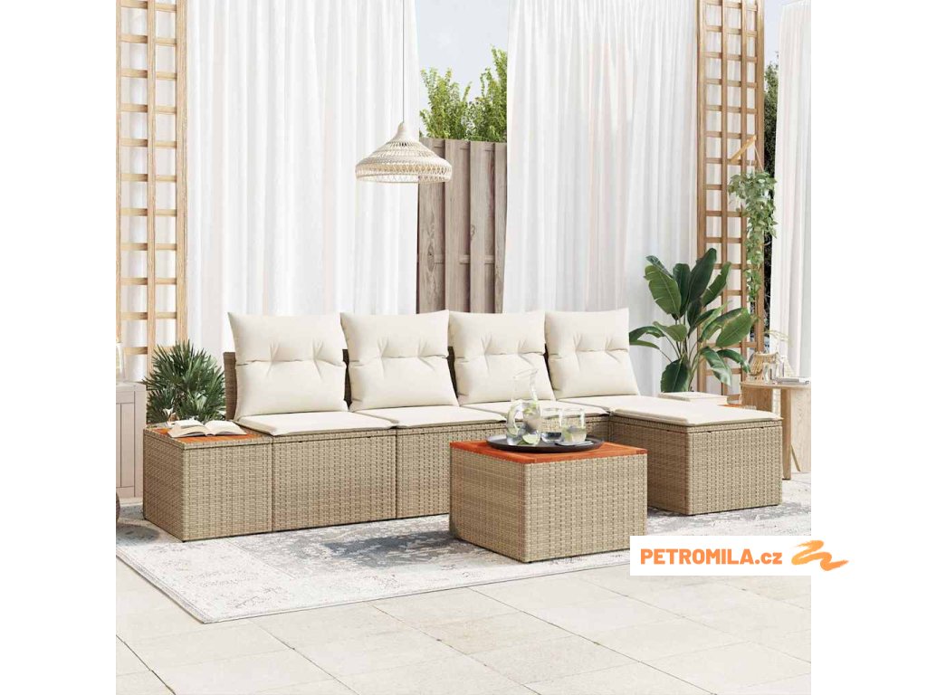 Sada zahradních pohovek 6 pcs Béžová a krémová Polyratan