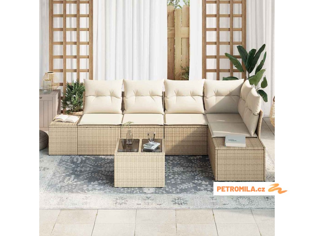 Sada zahradních pohovek s polštářem 9 pcs Béžová Poly ratan