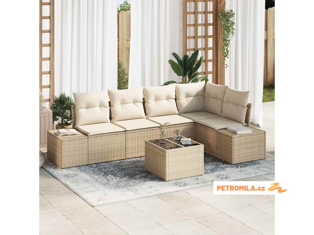 Sada zahradních pohovek 6 pcs Béžová a krémová polyratan