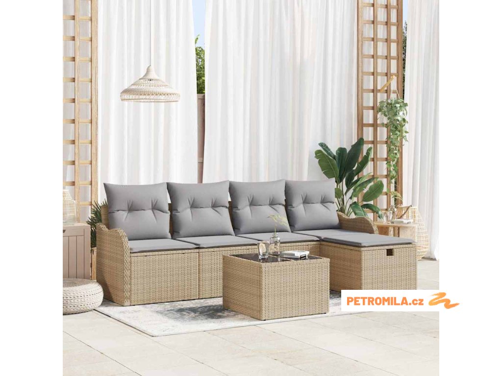 Sada zahradních pohovek 6 pcs béžová a světle šedá Poly ratan
