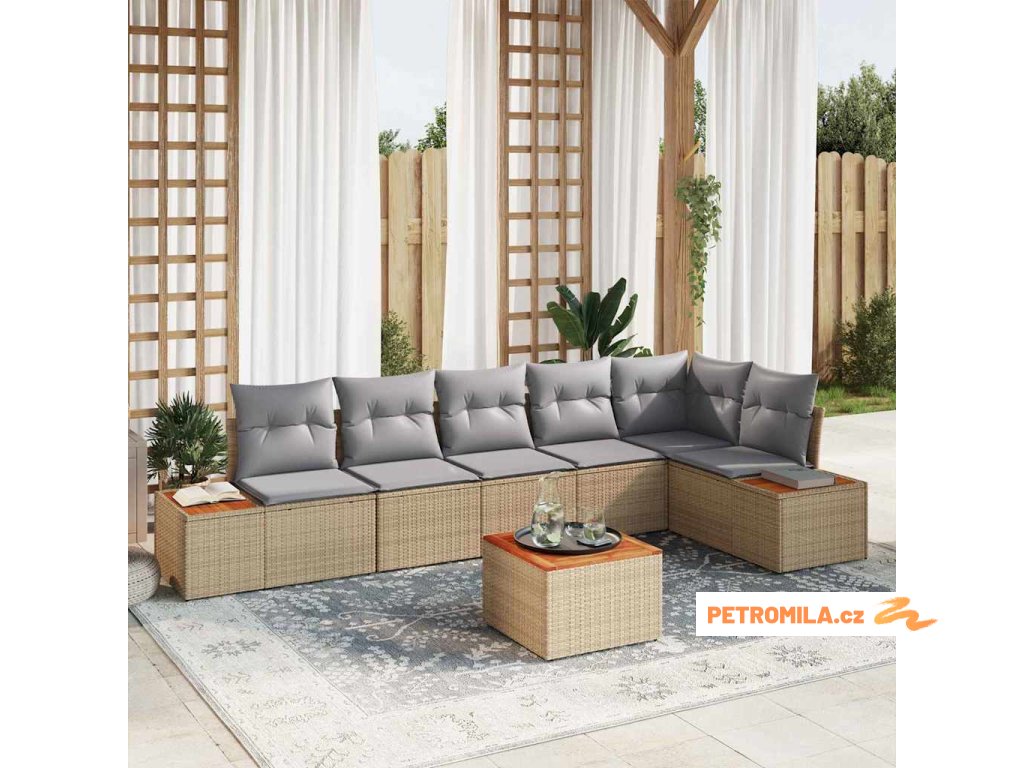 - Materiály: Souprava je vyrobena převážně ze syntetického poly ratanu, který je známý svou odolností a moderním vzhledem. Dřevěné akáciové prvky přidávají přírodní teplo a eleganci, což zajišťuje dlouhodobé užívání.