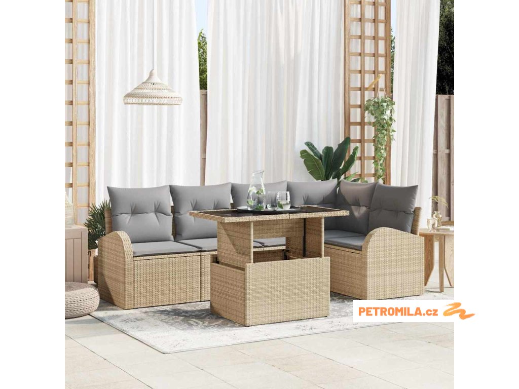 Sada zahradních pohovek 6 pcs Béžová a Světle šedá polyratan