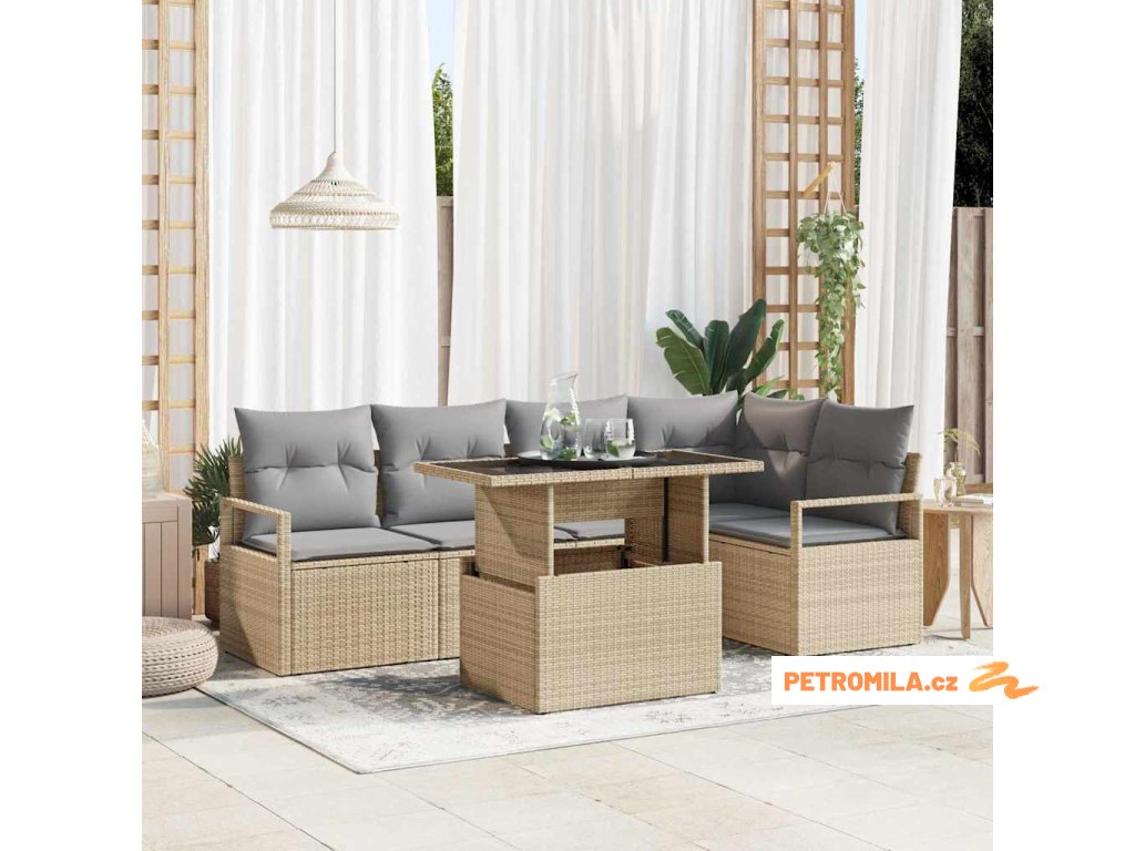 Sada zahradních pohovek 6 pcs Béžová a Světle šedá polyratan