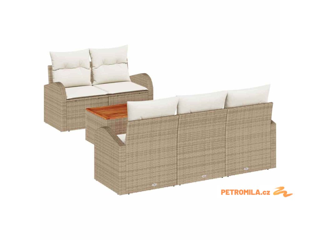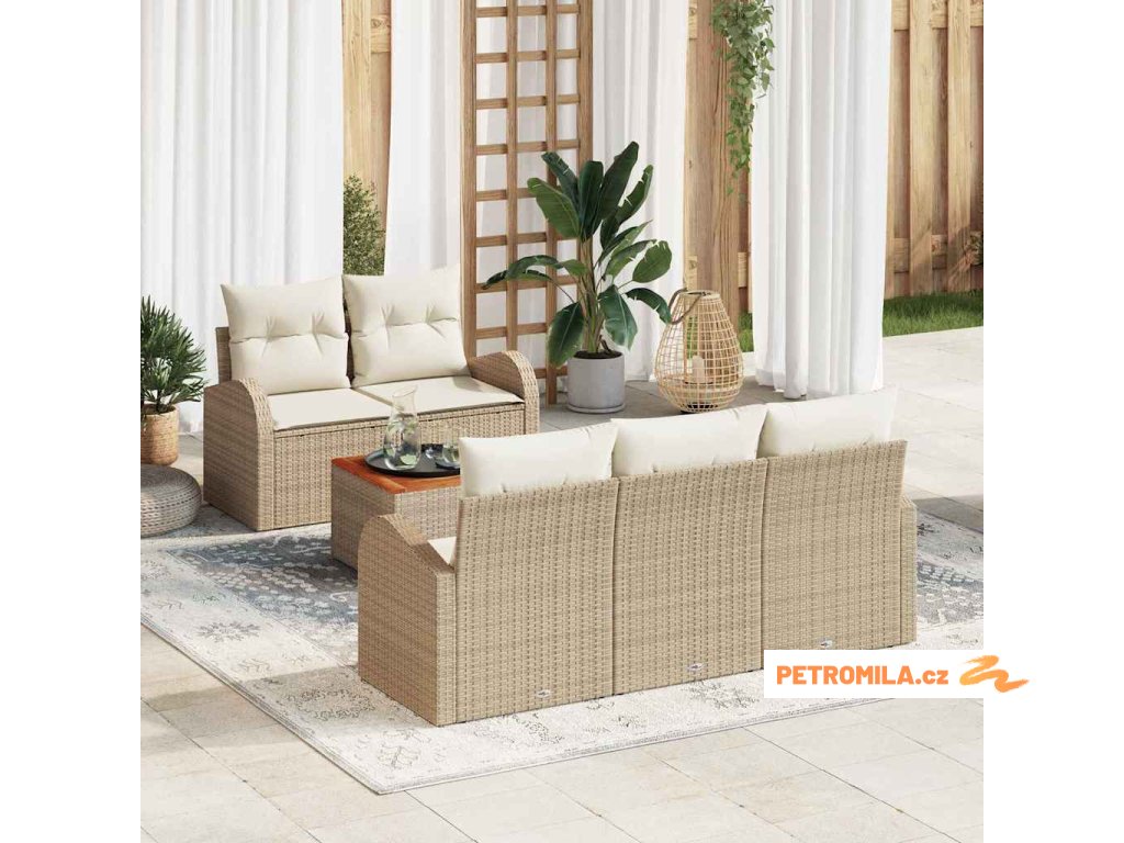 Sada zahradních pohovek s polštářem 6 pcs Béžová Poly Ratan