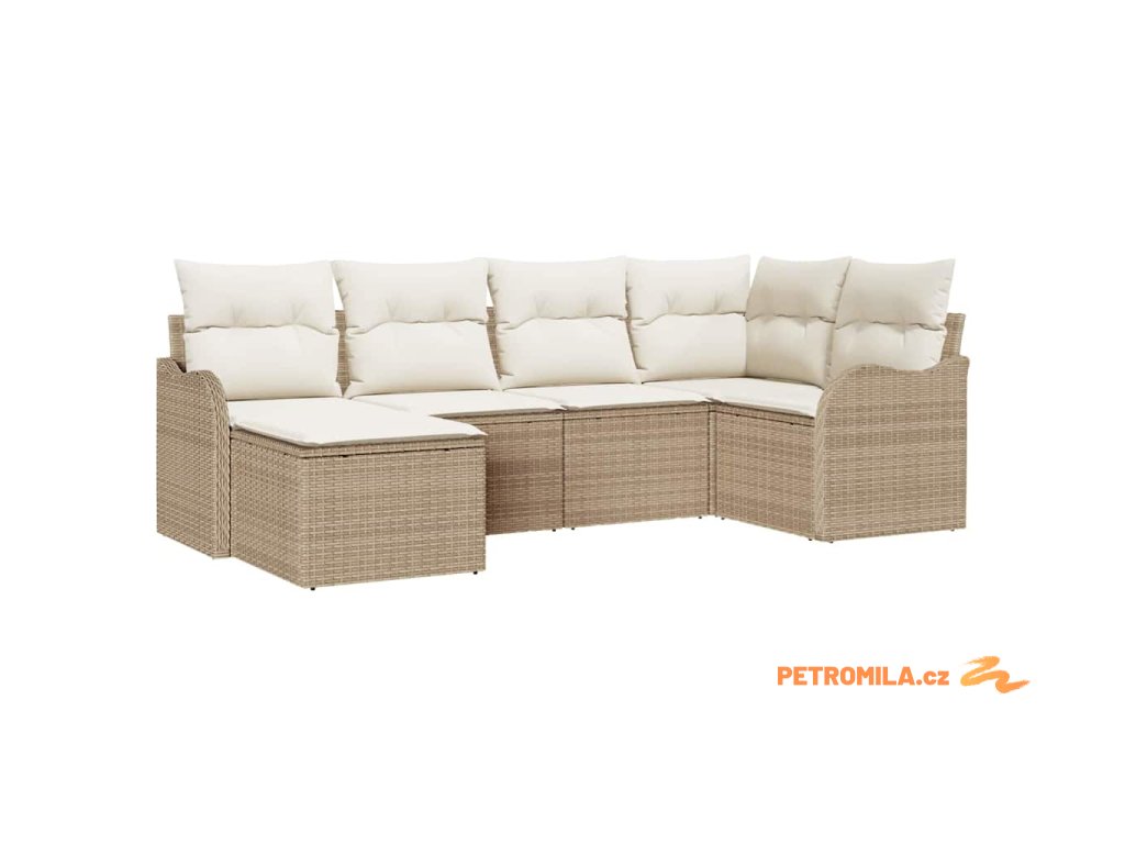Sada zahradních pohovek s polštářem 6 pcs Béžová Poly Ratan