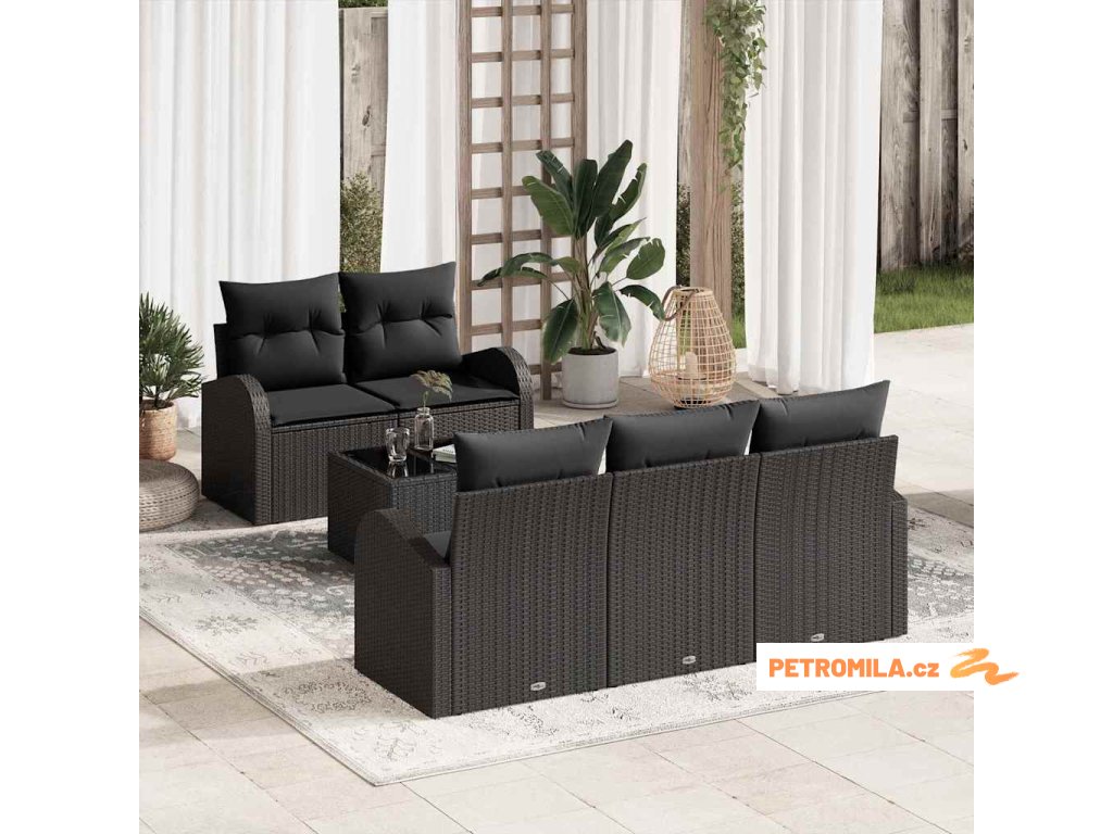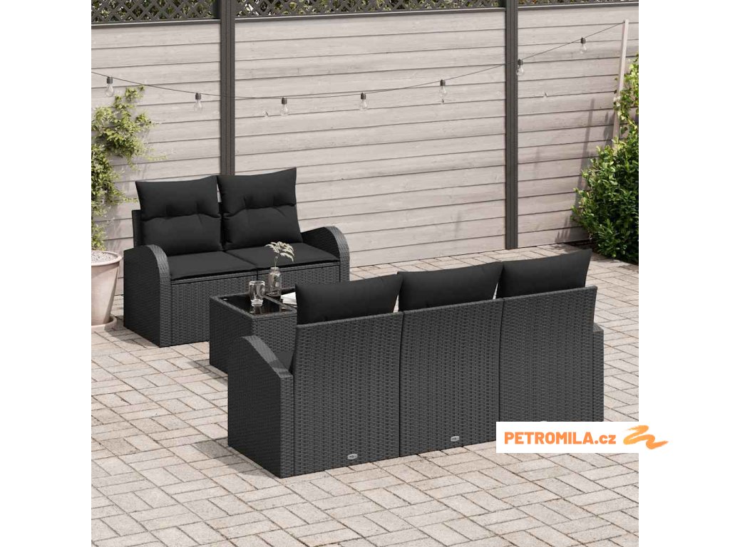 Sada zahradních pohovek 6 pcs Černá 55 x 55 x 37 cm Poly ratan
