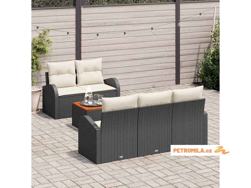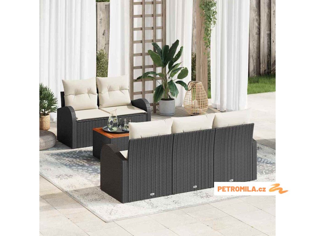 Sada zahradních pohovek s polštářem 6 pcs Černá Poly Ratan