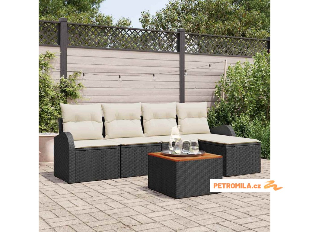 Sada zahradních pohovek 6 pcs Černá a bílá