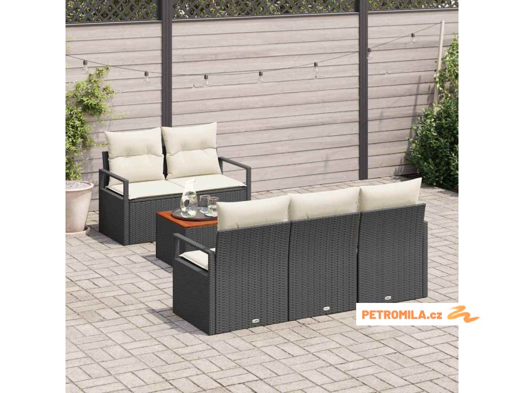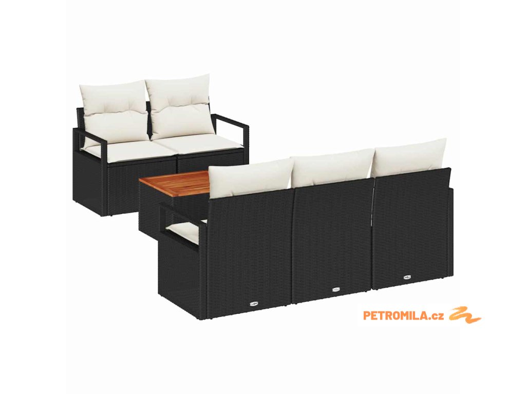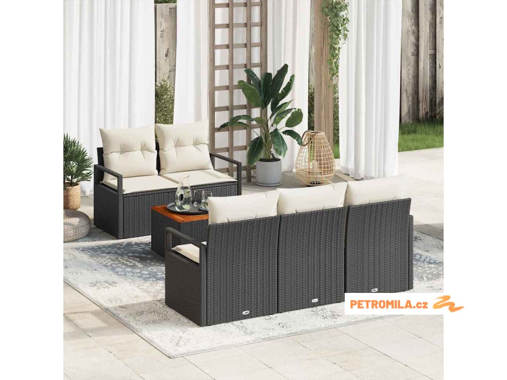 Sada zahradních pohovek s polštářem 6 pcs Černá Poly Ratan