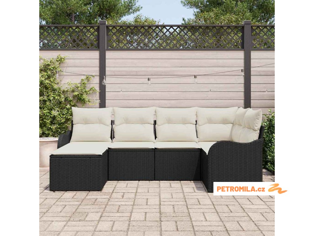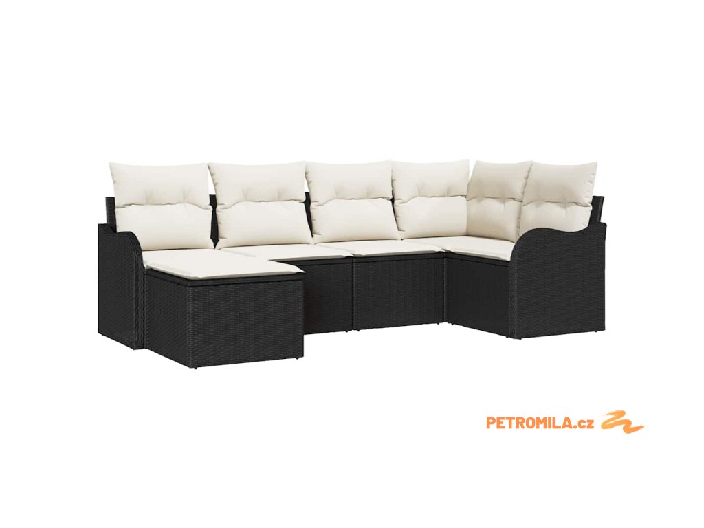 Sada zahradních pohovek 6 pcs Černá a bílá Poly ratan