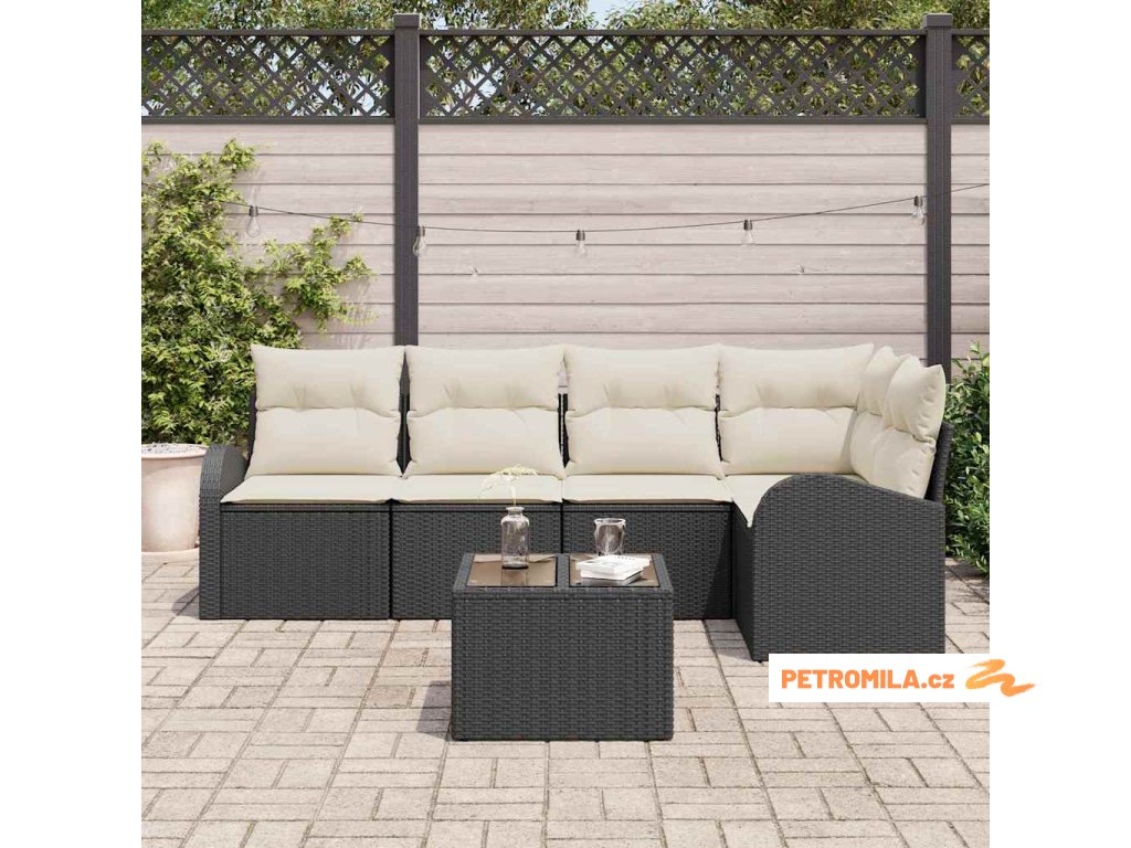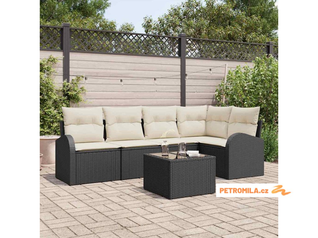 Sada zahradních pohovek 6 pcs Černá a bílá polyratan