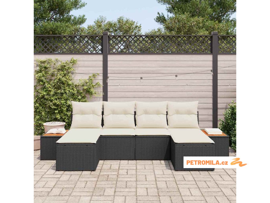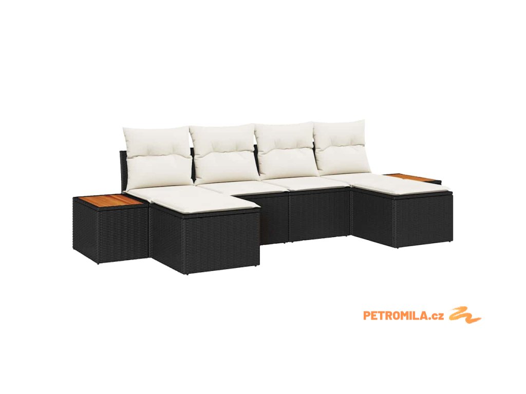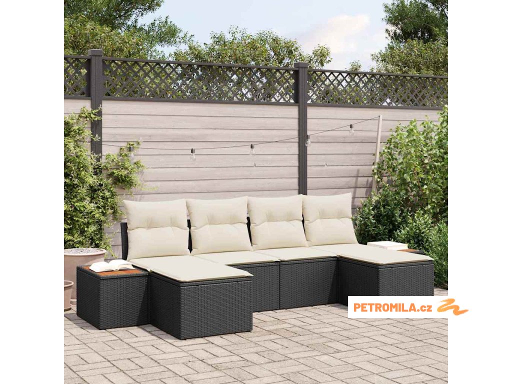 Sada zahradních pohovek 6 pcs Černá a krémová Poly Ratan