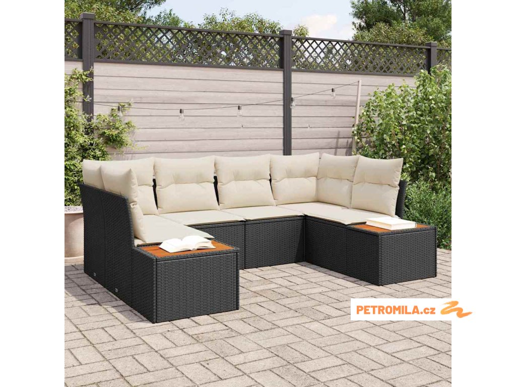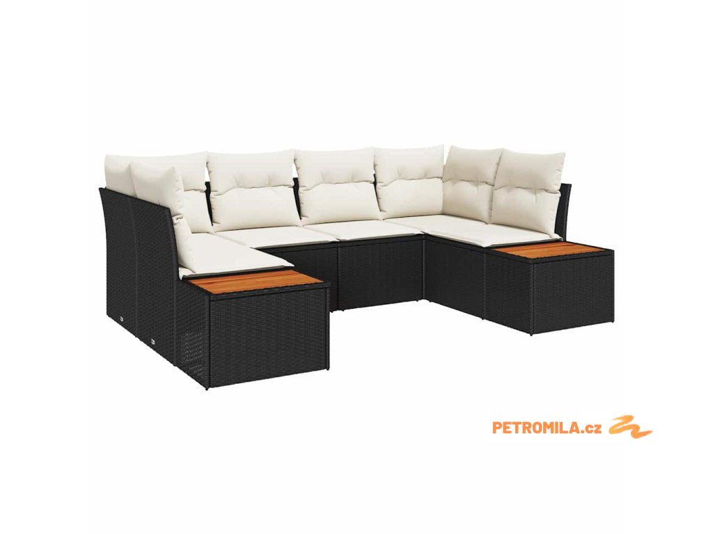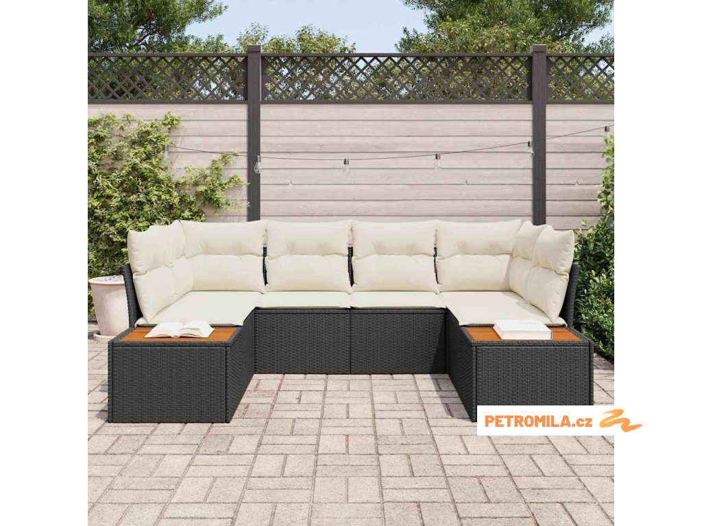 Sada zahradních pohovek 6 pcs Černá a krémová Poly ratan