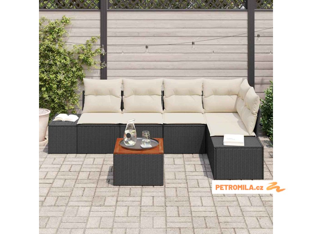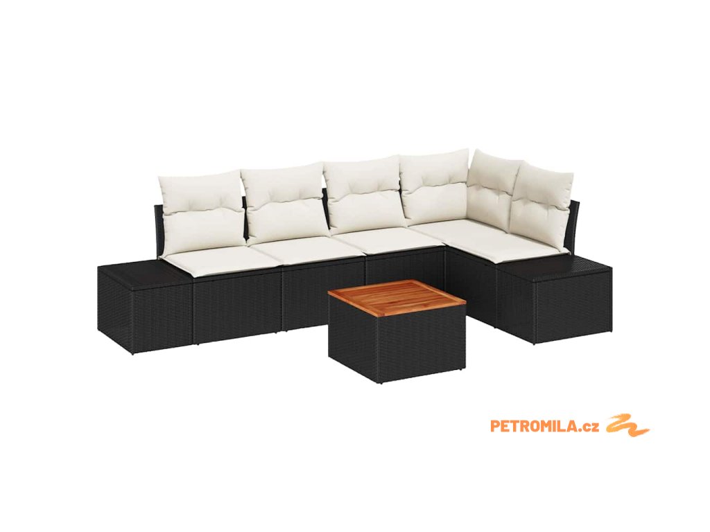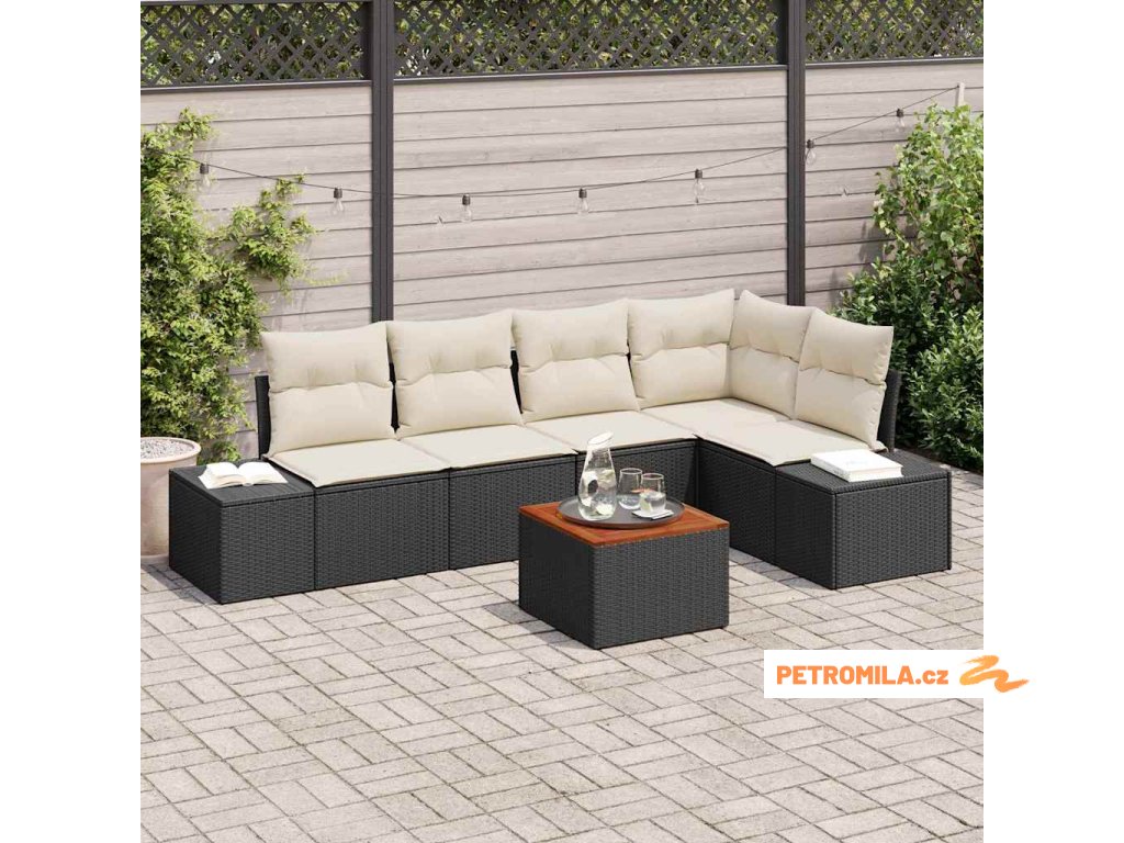 Sada zahradních pohovek 6 pcs Černá a krémová polyratan