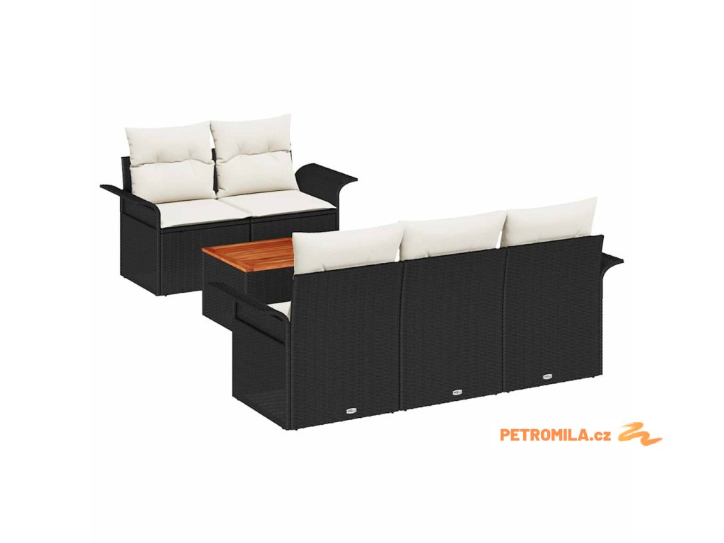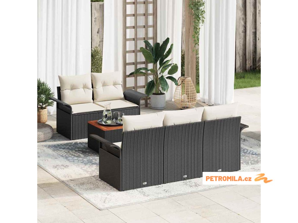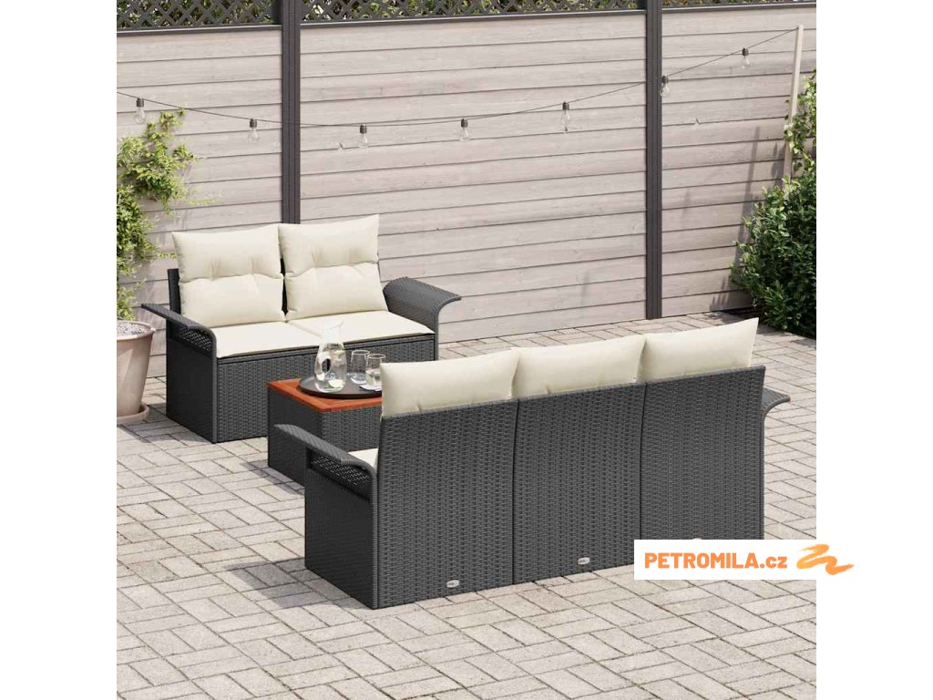 Sada zahradních pohovek 6 pcs Černá a krémová polyratan