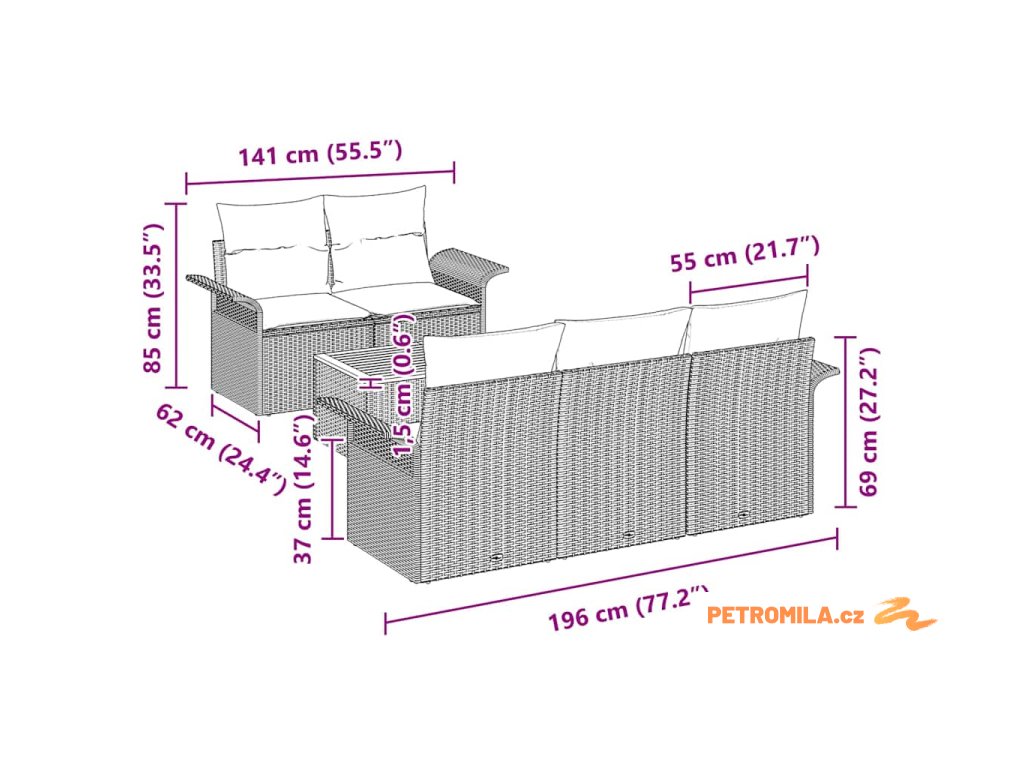 • Posezení: 110 x 55 cm (Š x H)