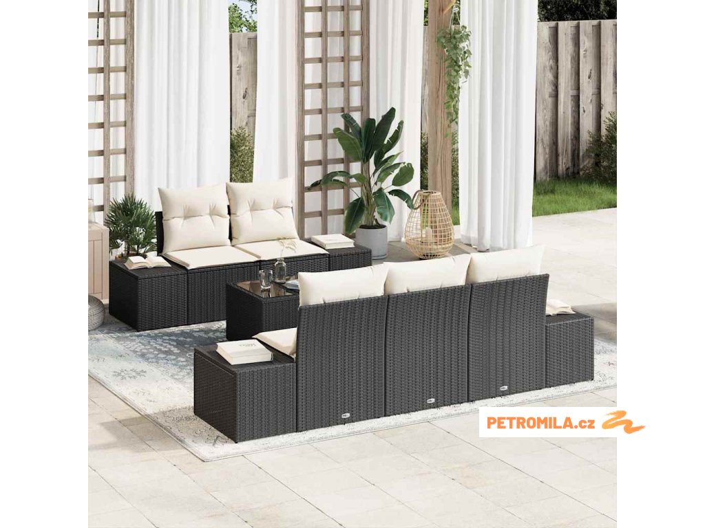 Sada zahradních pohovek 6 pcs Černá a krémová polyratan
