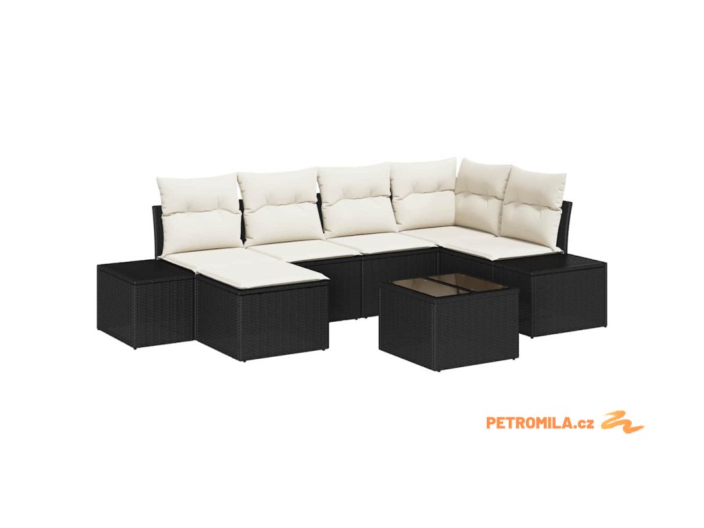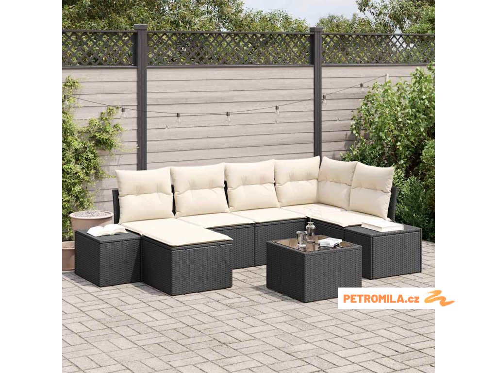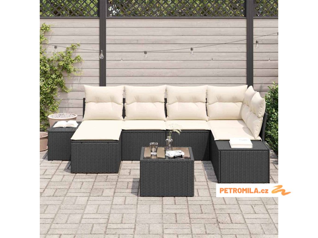 7dílný zahradní jídelní set s poduškami černý polyratan