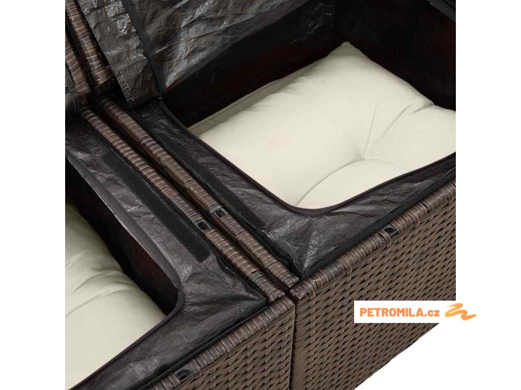 - Údržba a péče: K udržení v bezvadném stavu je doporučeno používat ochranný kryt, když se sada nepoužívá. Spolu s jemným úklidem zajistí delší životnost materiálů a udrží vaši pohovkovou sadu hezkou a svěží po dlouhou dobu.