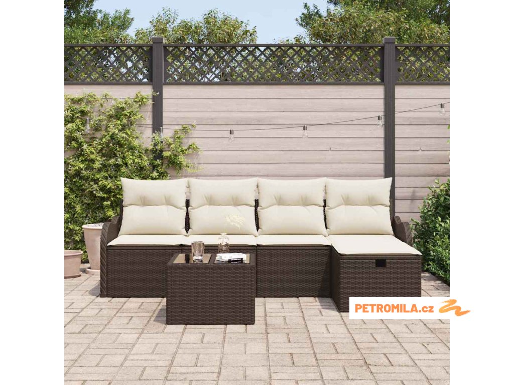 Sada zahradních pohovek 6 pcs Hnědá a krémová Poly ratan