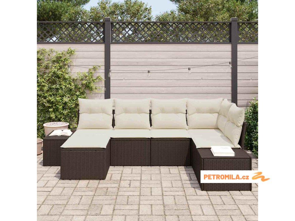 Sada zahradních pohovek 6 pcs Hnědá a krémová polyratan